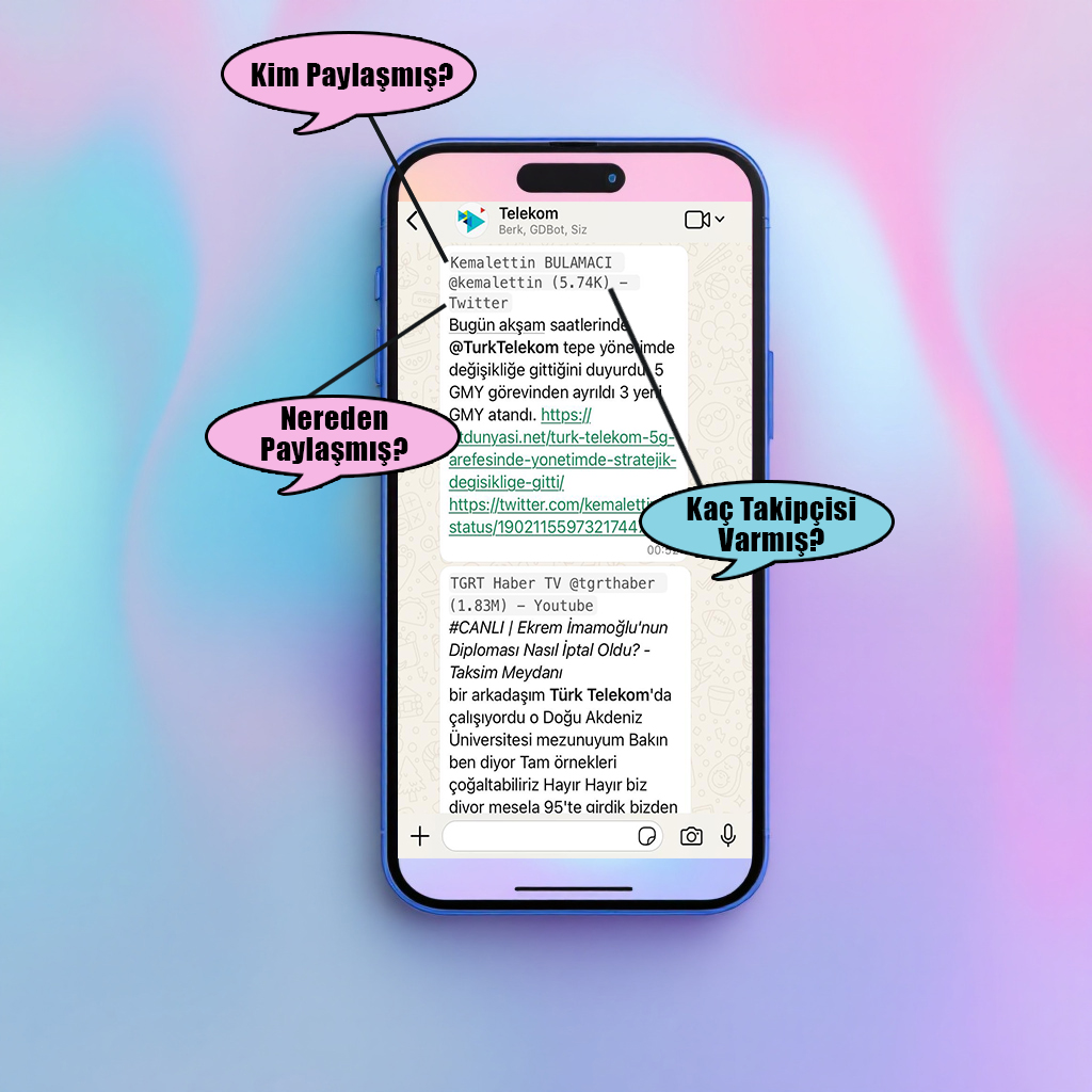 “WhatsApp Akışı” hizmetimiz sayesinde adınızın geçtiği tüm içerikleri anında WhatsApp mesajı olarak size yönlendiriyoruz